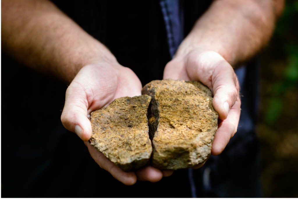 Mick showing the fossilised mussel bed. Photo: Dani Cole/The Mill.