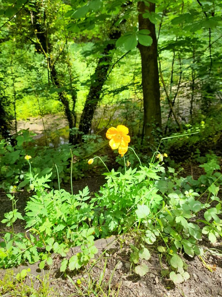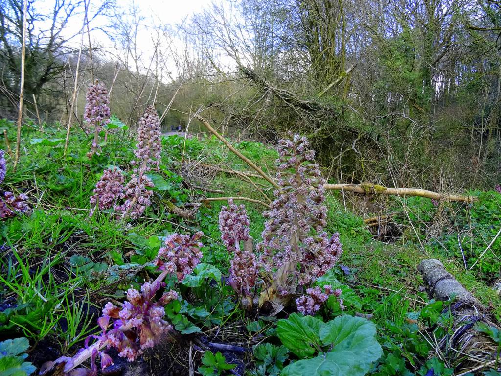 Amongst the flora recorded are red campion, lesser celandine, bistort, wood sorrel, dog’s mercury, hybrid bluebell, hybrid daffodil, pignut, enchanters nightshade, opposite leaved golden saxifrage, ramsons (wild garlic), butterbur and wood anemone. Regarding wild garlic the leaves, flowers, and stem are all edible, but best consumed before you can smell the garlic in the woods, as this usually a sign that the plant is going past its best.