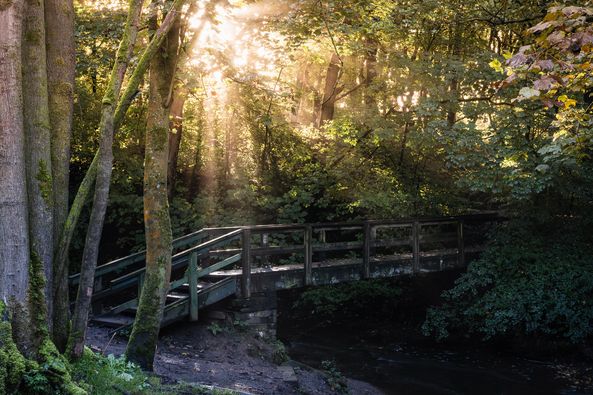 Amongst the wild life are red deer, grey squirrels, foxes, moles, frogs, woodmice, various bats (Noctule, Common Pipistrelle and Daubentons), and maybe an otter nearby!