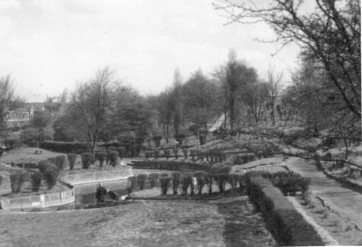 The paddling pool (the wading pool) was very popular from the 1920’s until the early 1960’s. It was fed by water from Borsdane Brook via sluice gates. The pool was surrounded by dahlias, and children changed into their swimwear in the privet bushes!