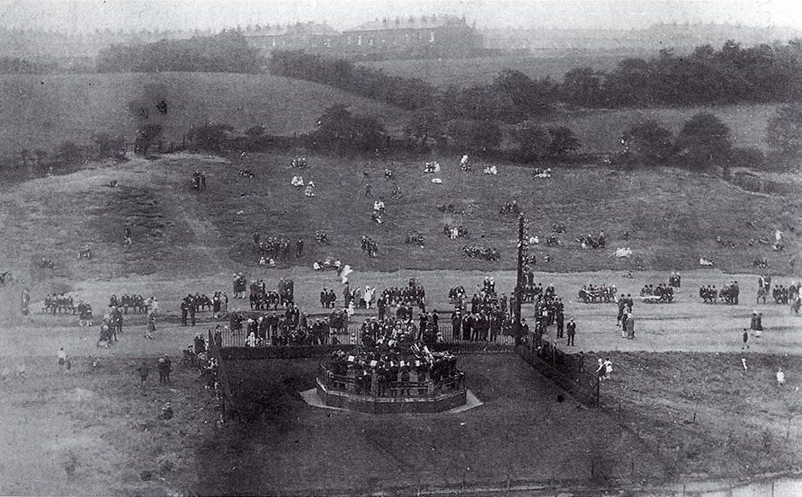 The bandstand appears to have been started around 1922 and was planned to be a raised platform, octagonal in shape with a roof supported on pillars in a horse-shoe shape, and the land opposite to be terraced for audiences. Sadly this did not happen but the roofless bandstand saw regular brass band concerts on alternate evenings in summer which were much enjoyed with people having picnics on the grass.